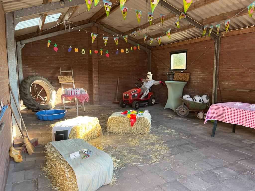 In de dagen voorafgaand aan het feest is de volledige locatie opgebouwd en aangekleed. Hierbij zijn alle decoraties geplaatst, de ruimte ingericht en de muziek en verlichting getest. Door voldoende tijd te nemen voor de voorbereiding kon op de dag van het feest de focus liggen op het ontvangen van de gasten en het genieten van het evenement. Het eindresultaat was een volledig aangeklede feestlocatie waarin het boerderijthema duidelijk naar voren kwam en gasten zich direct in de sfeer van het feest bevonden.